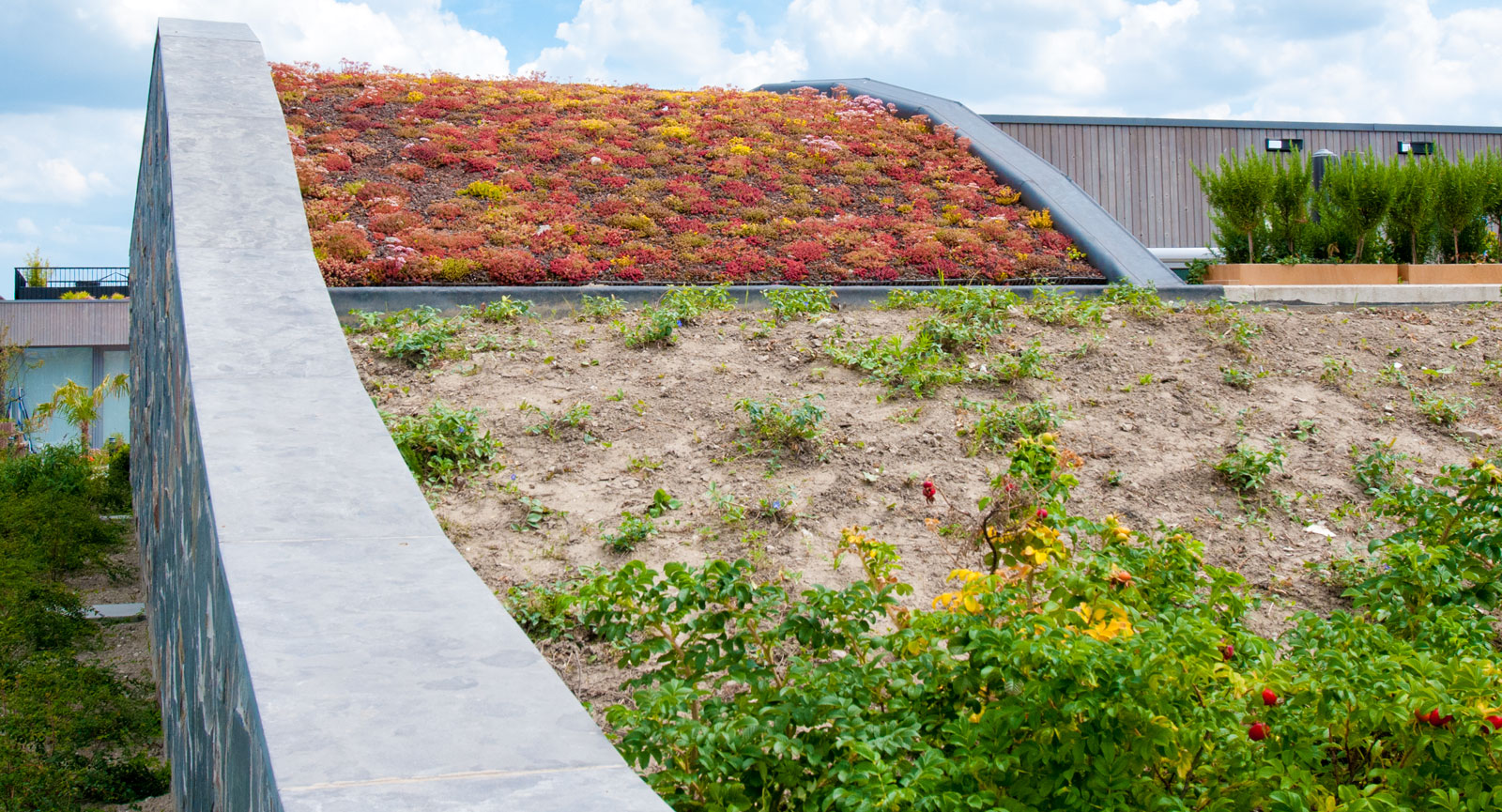 • werkt het groendak geluiddempend, zowel binnen als buiten