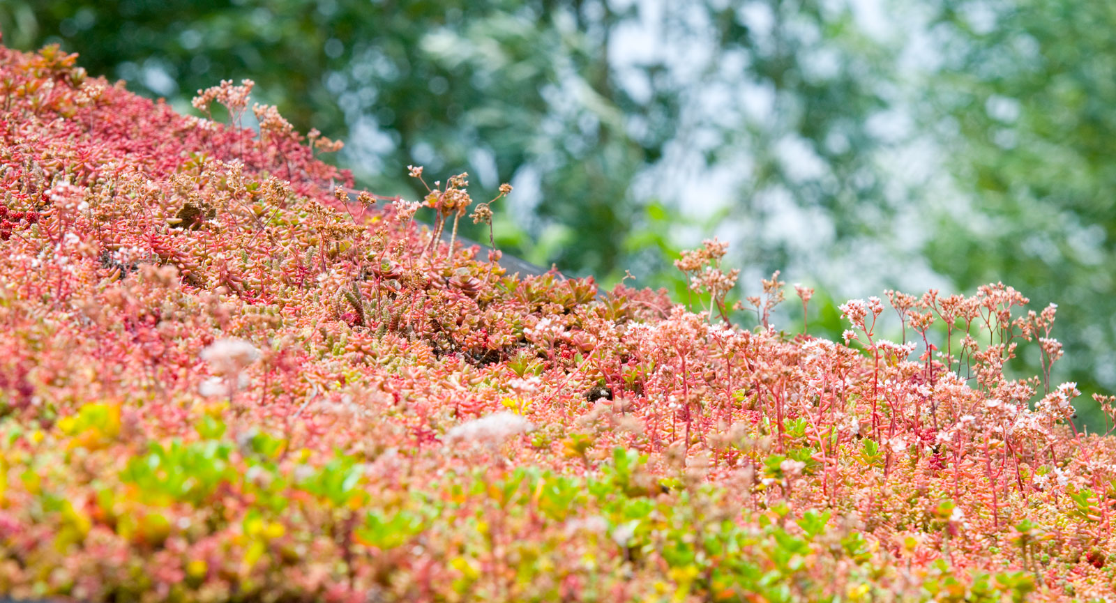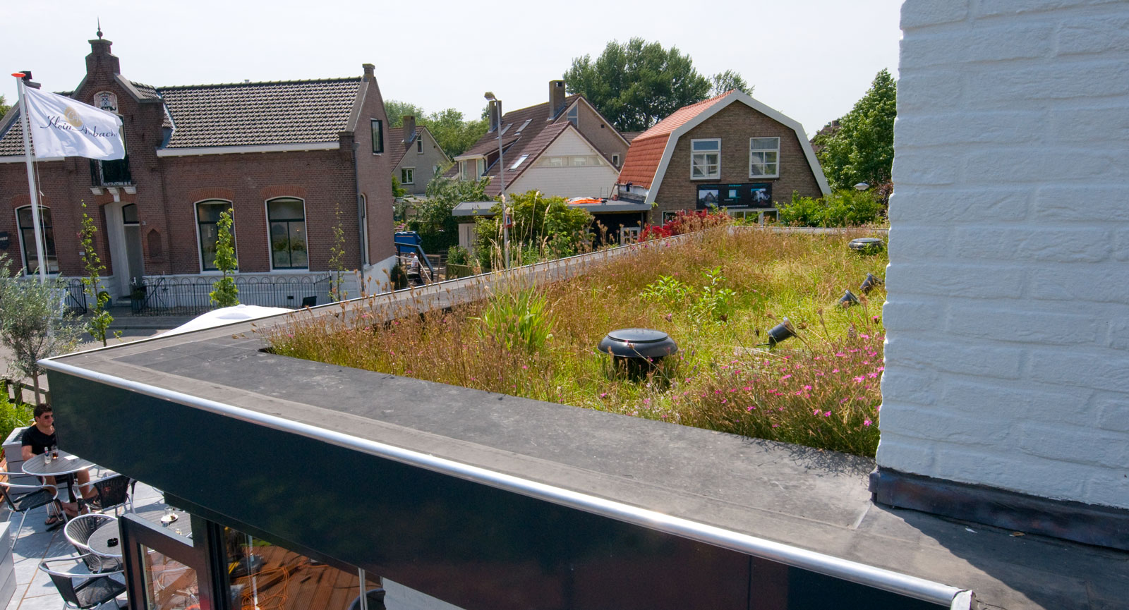 • werkt het groendak geluiddempend, zowel binnen als buiten